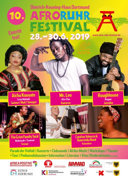 Im vergangenen Jahr konnte der Verein Africa Positive e.V. sein zwanzigjähriges Bestehen feiern. Gegenwärtig laufen die letzten Vorbereitungen für das vom Verein inspirierte Afro Ruhr Festival auf Hochtouren. Das im Ruhrgebiet wohl größte interkulturelle Festival findet nunmehr bereits zum zehnten Mal in Dortmund statt. Und zwar vom 28. bis 30 Juni im Dietrich-Keuning-Haus (Leopoldstr. 50 bis 58, U-Bahnstation Leopoldstraße). Während eines Pressegesprächs diese Woche im Dietrich-Keuning-Haus (DKH) erinnerte dessen Direktor Levent Arslan an die ersten Festivalauflagen im Dortmunder Fredenbaumpark. Damals wäre immer wenigstens ein Festivaltag ins Wasser gefallen. Weshalb das Afro Ruhr Festival nun seit fünf Jahren im DKH zusammen mit dem Kulturbüro der Stadt Dortmund veranstaltet werde. Neben anderen ähnlichen Veranstaltungen dieser Art im Haus, so Arslan, sei das dreitägige Afro Ruhr Festival das längste und vom Programm her umfangreichste. Denn es umfasse ein „riesiges Konzertprogramm“, spreche alle Generationen an und habe zum Abschluss einen Familiensonntag im Programm. Ein Highlight des diesjährigen Festivals dürfte die „Parade der Vielfalt“ sein.