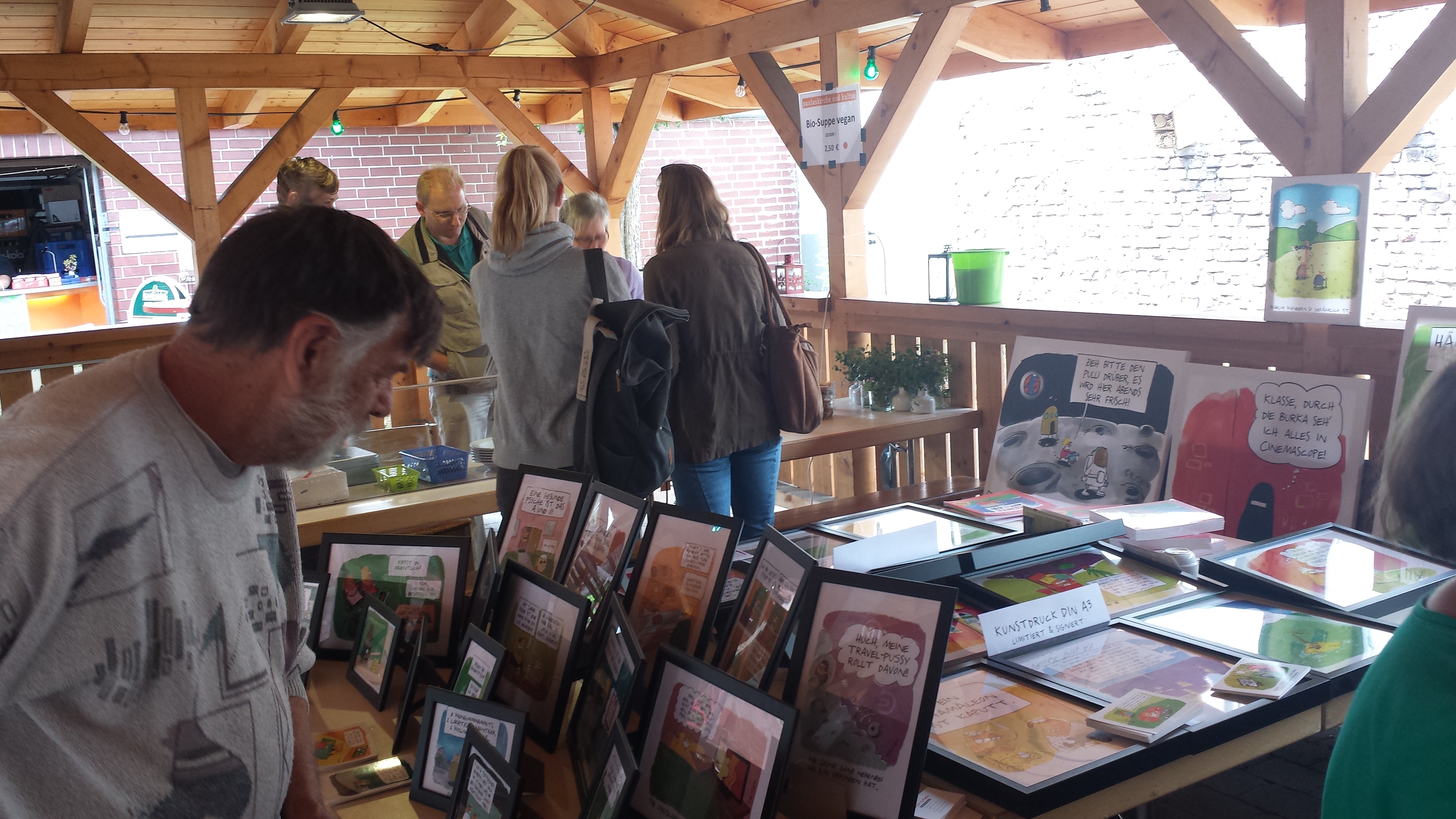 Das Festival präsentierte eine Mischung aus unterschiedlichen Kulturwelten. Es traten mehrere SängerInnen/Songwriter in Verbindung mit Bildender Kunst, Bildung, Nachhaltigkeit und Umweltschutz auf. Ganz Sinne des oben genannten Vereins war es prächtig gelungen, Kultur und Leben in interessante Zusammenhänge zu bringen. Das spiegelte auch ein Kulturmarkt wider. Tolle KünstlerInnen mit sehr unterschiedlichen. ausgefallenen Projekten hatten sich im Kirchhof eingefunden. Grafiken und Malerei waren ausgestellt und konnten käuflich erworben werden. Persönliche Begegnungen untereinander waren erwünscht und wurden auch genutzt, um in einen Dialog einzutreten.