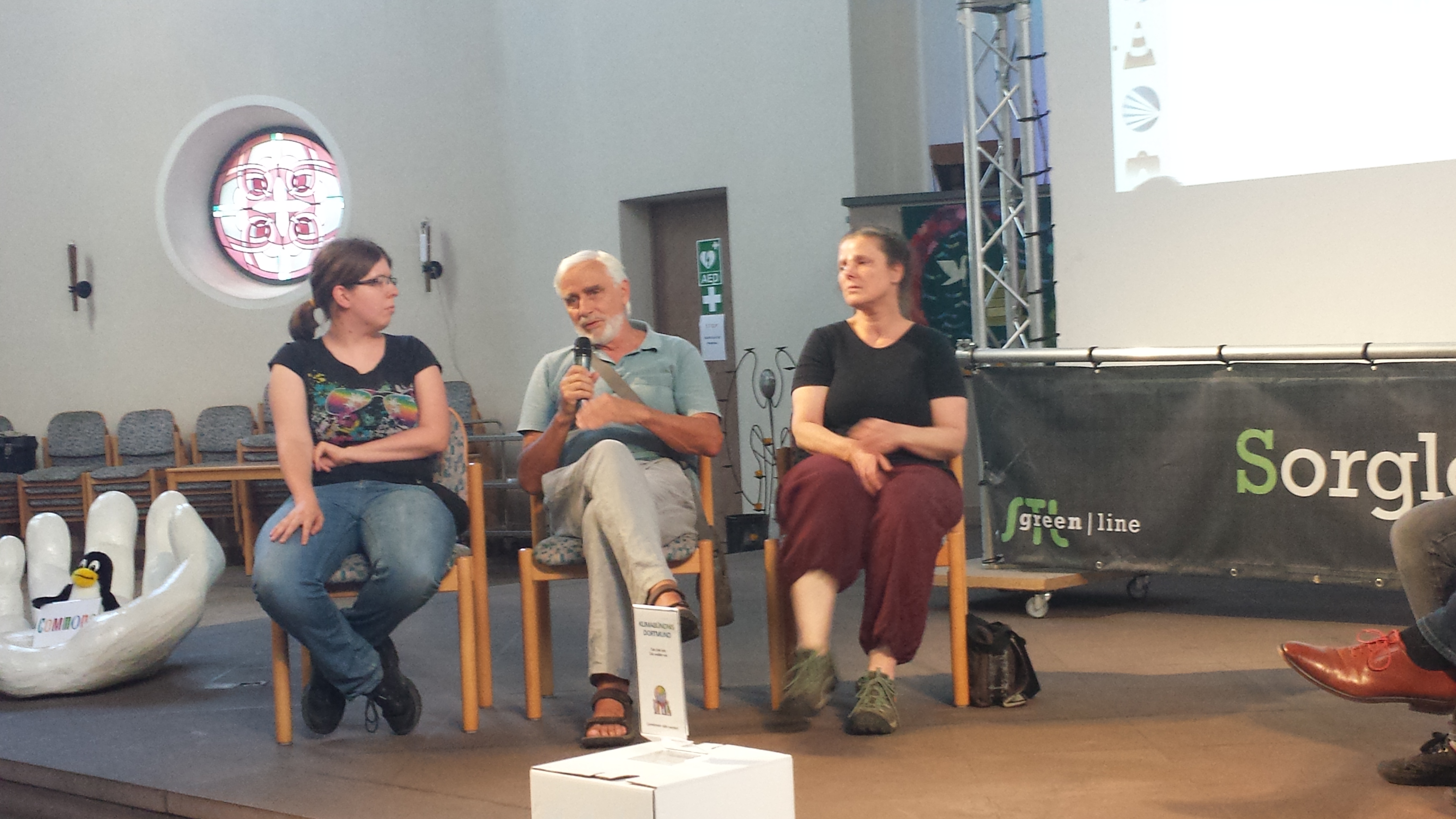 Darunter u.a. ein Künstler, Aktivisten von Attac und dem Bündnis DEW-kommunal. Auch ein leitender Mitarbeiter von DEW21 (Dortmund Energie und Wasser – kommunale Tochtergesellschaft der Stadt Dortmund) betrat das Podium. Er meldete sich recht oft zu Wort. Weswegen im Verlauf der Veranstaltung im Publikum leichter Unmut Luft machte (Stichwort: Bitte keinen Werbeblock!). Freilich konnte aber niemand wissen, ob dieser Herr von seinem Betrieb zum Klima-Dialog geschickt wurde, um in gutes Licht zu setzen, oder sein Dasein rein eigenem Interesse geschuldet war.