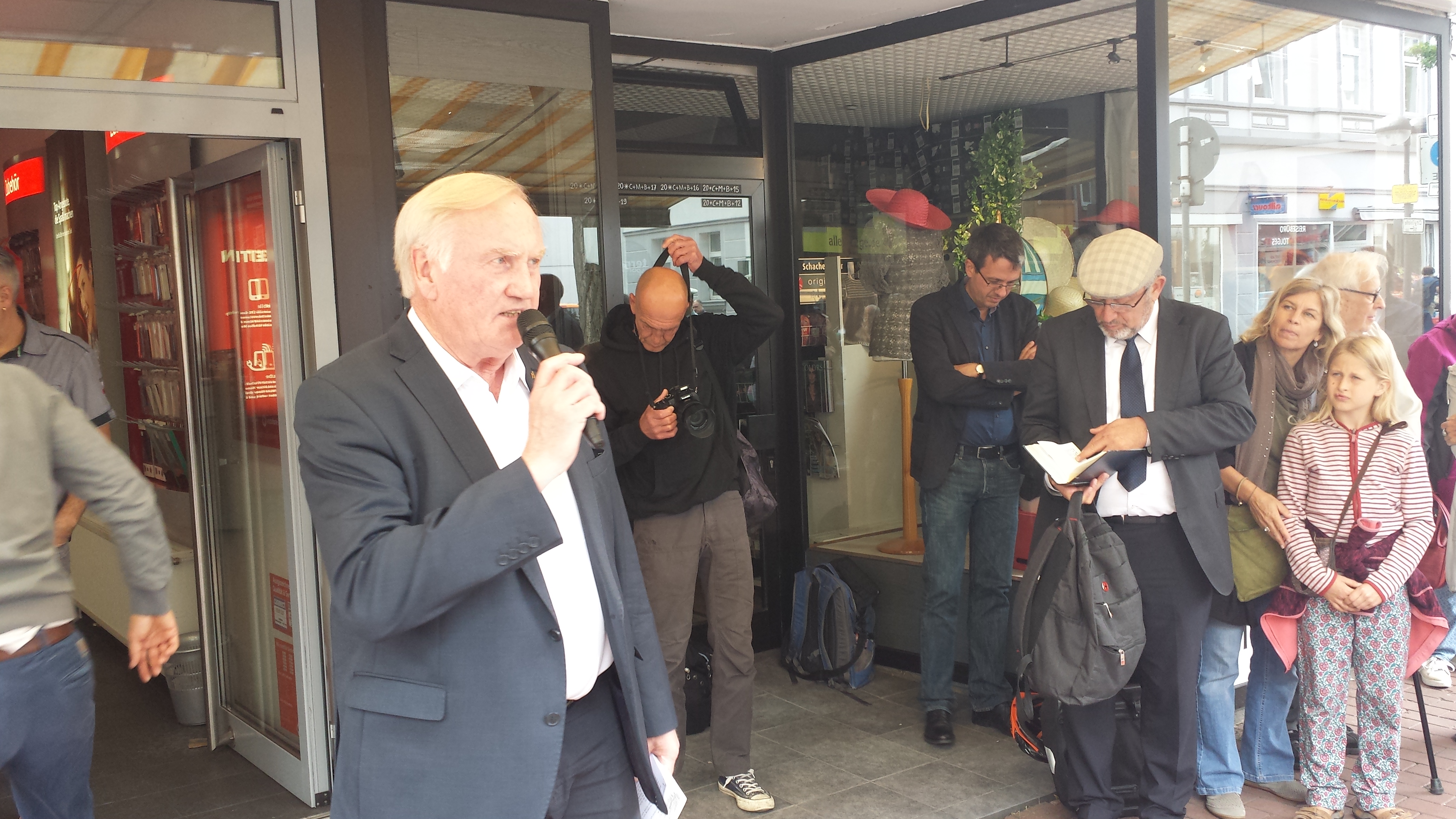 Zur Stolpersteinverlegung waren viele Familienangehörige nach Dortmund gereist. Bezirksbürgermeister Hans Semmler: Die Eisenbergs werden in Hombruch immer ein Gedenken finden