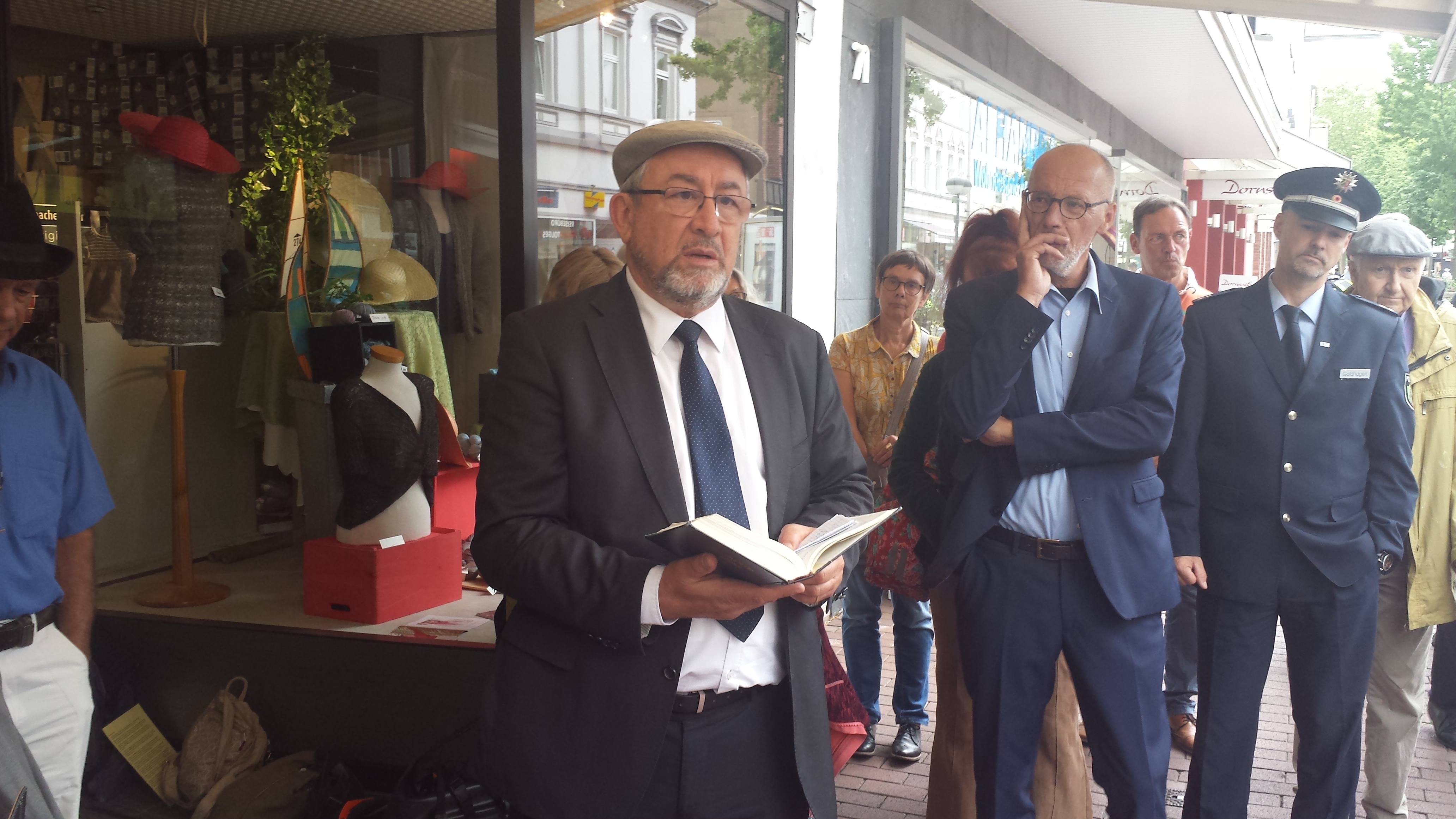 In seiner Ansprache an die aus Israel, aus dem Kölner Raum und aus Bayern nach Dortmund angereisten Angehörigen informierte Bezirksbürgermeister Hans Semmler über die Aufarbeitung der Nazizeit und das alljährliche Gedenken die Opfer des Nationalsozialismus an Sparkassenfiliale am 27. Januar im Stadtbezirk Hombruch. Semmler sprach von einem traurigen Anlass, aus welchem die Stolpersteinverlegung erfolgt. Aber es sei auch ein gutes Zeichen, dass die Familienangehörigen nun hier an ihre Vorfahren denken könnten. Semmler erwähnte das Buch „Hombruch unterm Hakenkreuz“, welches bereits vor dreißig Jahren erschienen sei. Darin sei auch der Name Eisenstein enthalten, der in Hombruch immer ein Gedenken finde. Exemplare dieses Buches wurden am Abend in einer Veranstaltung in der Gedenkstätte Steinwache an die Familienangehörigen überreicht.