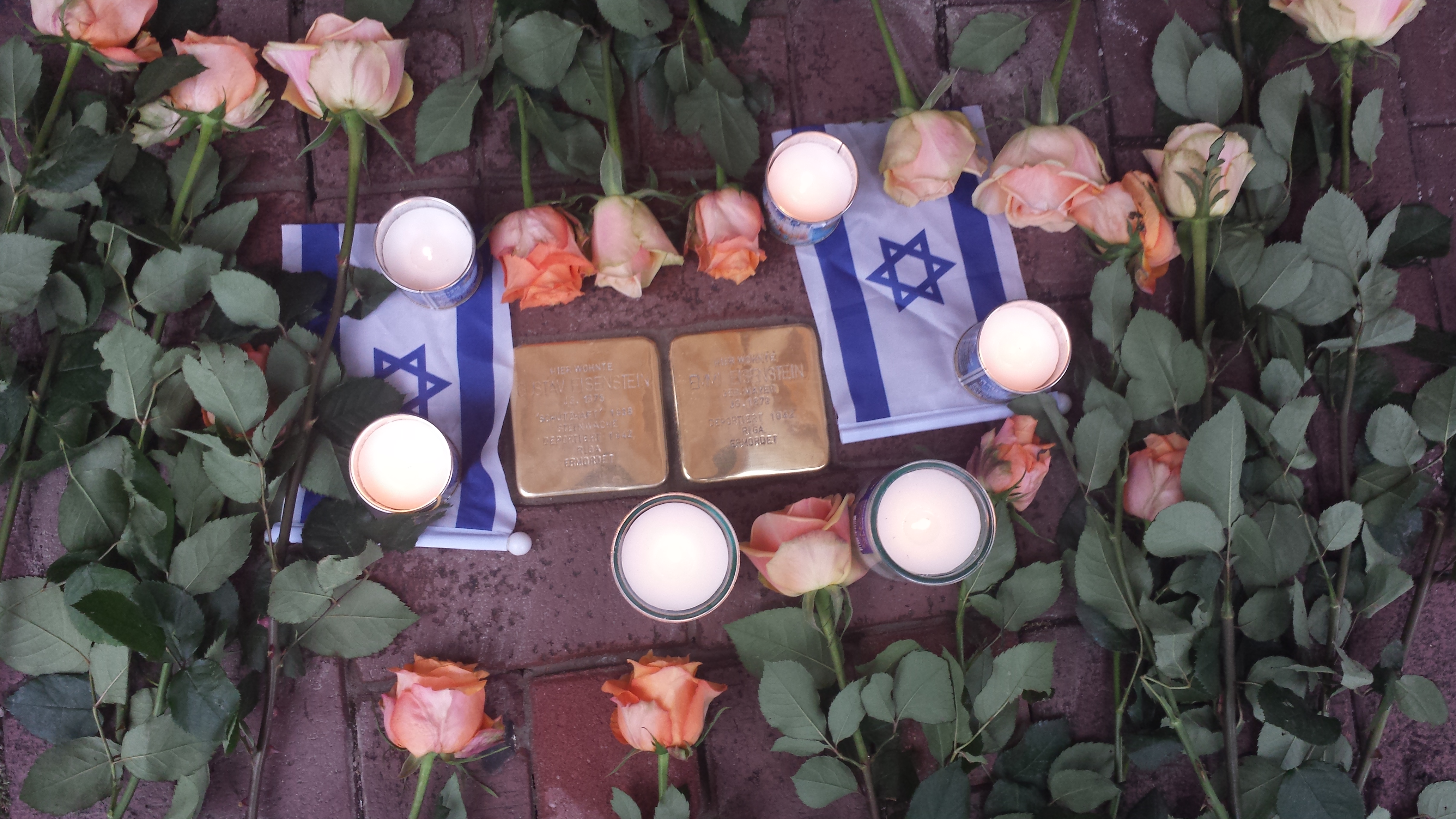 Am Montag dieser Woche sind in Dortmund neue Stolpersteine verlegt worden. Unweit der früher verlegten Stolpersteine für die Rosenbaums. Diesmal für das Ehepaar Emmi und Gustav Eisenstein im Stadtteil Hombruch von dem Grundstück Harkortstraße 73. Dort hatte das Ehepaar ein Sportartikelgeschäft betrieben. Zur Stolpersteinverlegung reisten rund 15 Enkel, Urenkel und Ururenkel aus Israel, Bayern und dem Kölner Raum an. Emmy und Gustav Eisenstein haben 46 heute lebende, direkte Nachfahren. Die Stolpersteinverlegung war eindrucksvoll und tief bewegend. Bezirksbürgermeister Hans Semmler richtete das Wort an die Anwesenden. Kantor Arie Mozes sprach nach Einbringung der Stolpersteine ein jüdisches Gedenkgebet. Blumen und israelische Fähnchen wurden neben den Stolpersteinen abgelegt.
