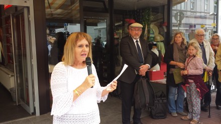 Die Enkelin der Eisensteins, Ruth Eisenstein, die ihre Großeltern nie kennengelernt hat sprach über die nun ins Werk gesetzte Stolpersteinverlegung von einem „rührenden Augenblick“ und dankte Dr. Mühlhofer und Markus Günnewig sowie allen anderen, die daran beteiligt waren für ihr Engagement, dass sie nun zustande kam.