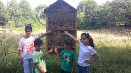 jeweiligen Grundschulen Erfahrungen im Bau von Insektenhotels gesammelt. Von daher war den zwei Jungen und zwei Mädchen auch bekannt, für welche Tiere die unterschiedlichen zu verwendenden Materialien dienen können.