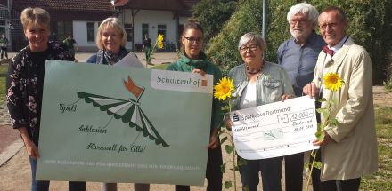 Alle am Projekt „Generationenkarussel“ Beteiligten haben sich über die großzügige Spende der Sparkasse Dortmund für die Anschaffung und Montage des Spielgeräts außerordentlich gefreut. Nun hoffen sie, dass der noch fehlende Restbetrag von achttausend Euro bis zum Hoffest am 15. September durch Spenden von Organisationen und Privatpersonen zusammenkommt. Geht alles gut, wird der bei den DortmunderInnen wie bei auswärtigen Gästen ohnehin beliebte Schultenhof im Frühjahr 2020 um eine weitere Attraktion reicher sein.