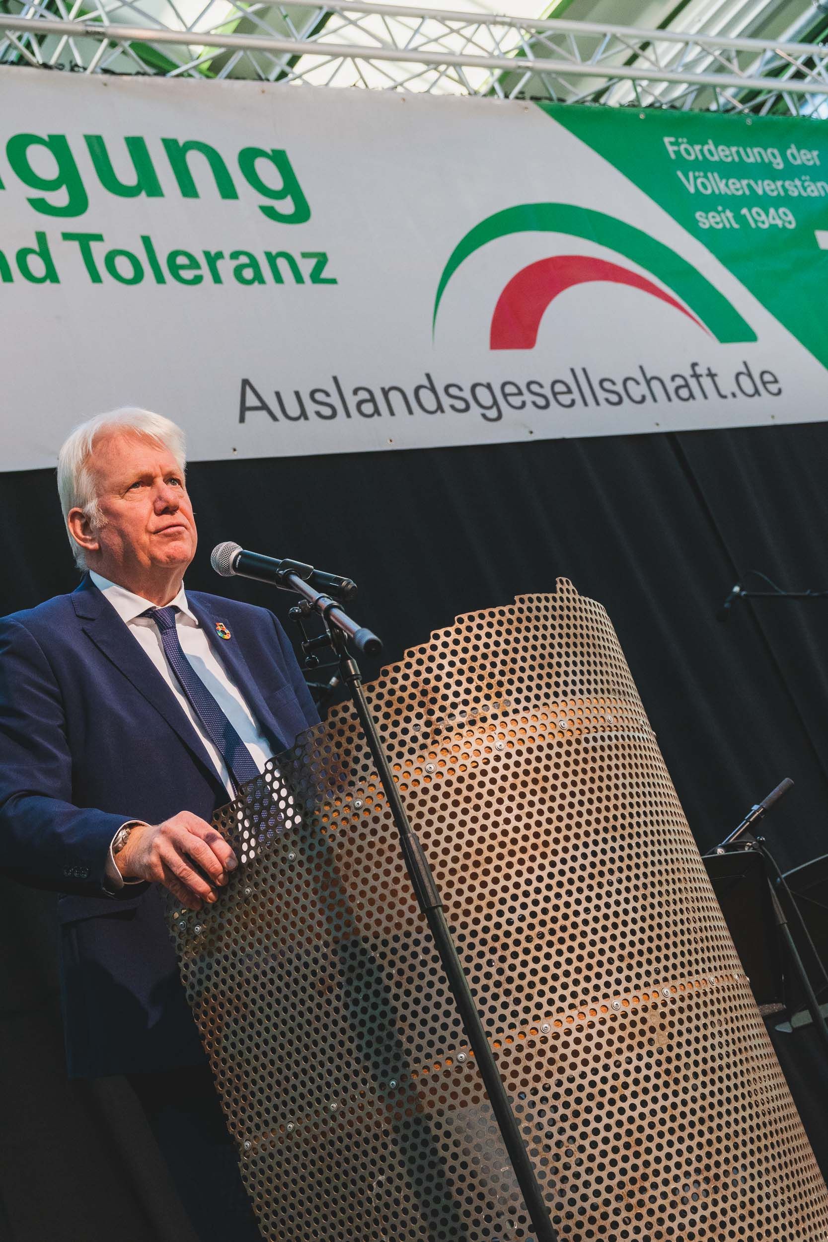 Präsident Klaus Wegener begrüßte die prominenten Gäste und nannte die Werte der Auslandsgesellschaft : Humanität, Toleranz, Völkerverständigung unverzichtbar