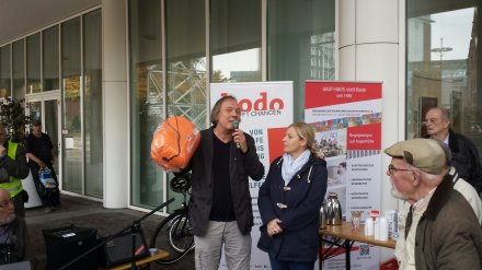Die Kundgebung am Dortmunder Rathaus musikalisch begleitet hat Peter Sturm mit gesellschaftskritischen Liedern zur Gitarre. Zum Ausklang wurde Kaffee und Kuchen angeboten. Vertreter der Jungen Borussen (JuBos) übergaben an Bernd Büscher (Kana-Suppenküche) vier Schlafsäcke als Spende. Bernd Büscher moderierte die Kundgebung. Er bedankte sich herzlich dafür, dass sich in diesem Jahr weitere Hilfeeinrichtungen beteiligten und reichlich Interessierte erschienen waren.