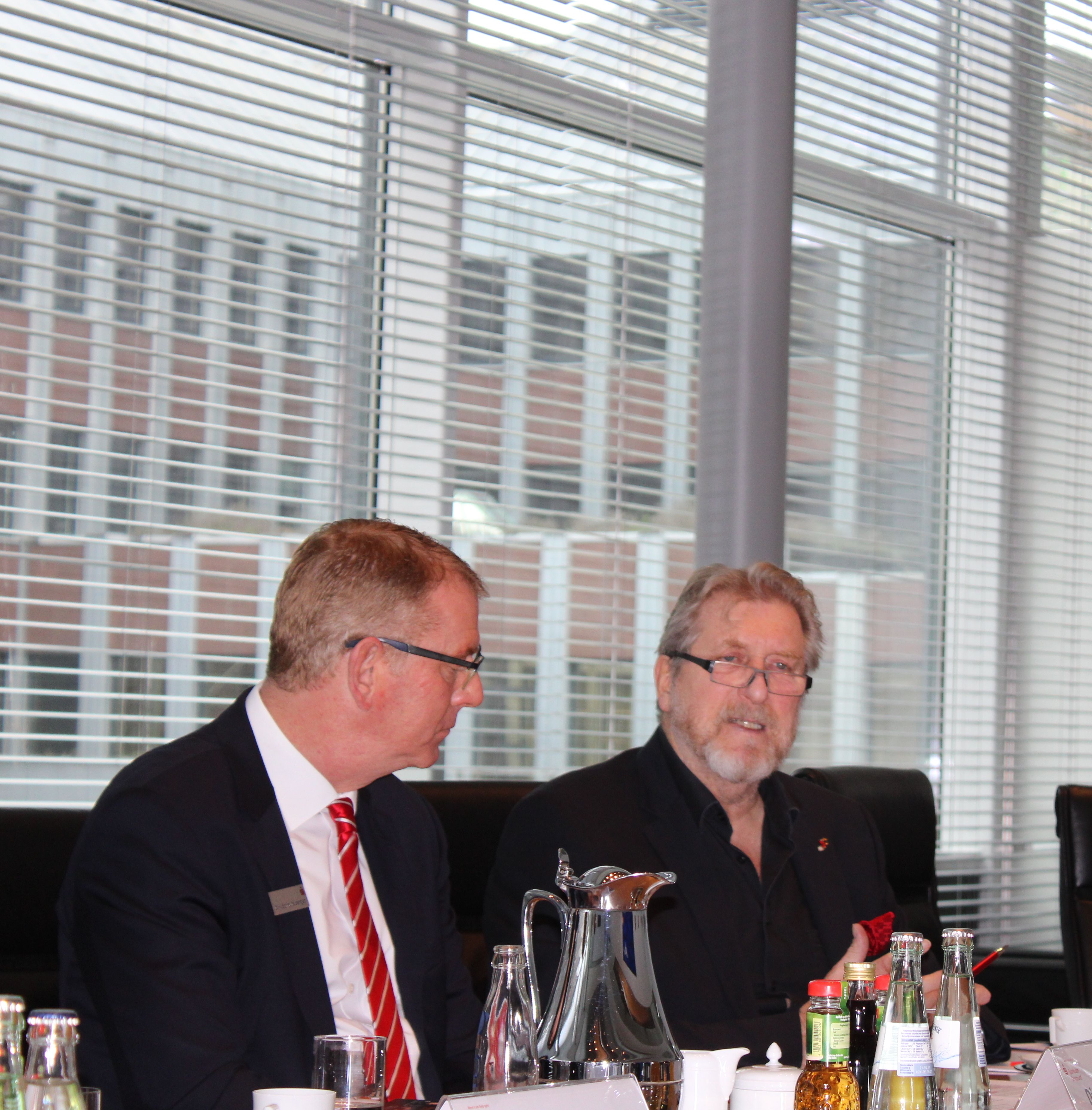 Der künstlerische Direktor von RuhrHOCHdeutsch, Horst Hanke-Lindemann (rechts) informiert die Presse über das Festivalprogramm. Links im Bild: Dirk Schaufelberger (Vorstandsvorsitzender Sparkasse Dortmund. Fotos: C. Stille
