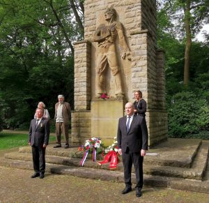 Norbert Schilff, Vorsitzender der SPD im Rat der Stadt Dortmund legte einen Kranz nieder. Zugegen war auch Manfred Kossack, der Beauftragte der Stadt Dortmund für Vielfalt und Toleranz. Georg Deventer hat eigens an der Stelle über der Kranzablegestelle den Schwur von Buchenwald, welcher nach wie vor allen Verpflichtung sein solle, angebracht (im Wortlaut hier nachzulesen).