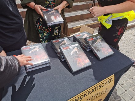 es nicht herausbringen wollen. Es konnte im Anschluss an die Rede Schultes käuflich erworben werden. Es bildete sich sofort eine Schlange.