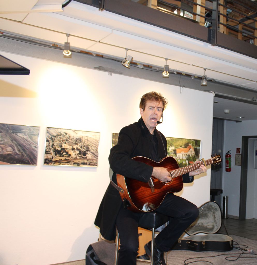 Gerhard Hendler, Vorsitzenden der Interessengemeinschaft Huckarder Vereine und die Künstlerin Bettina Brökelschen begrüßten die zahlreich erschienen Gäste im Kulturzentrum „Alte Schmiede“, einer ehemaligen Werkstatt der Zeche Hansa, in Huckarde mit einem „Herzlichen Gück auf!“. Bettina Brökelschen bedankte sich bei denen, „die geholfen haben den Katalog zu etwas ganze Besonderen zu machen, indem sie eine Interpretation, eine Geschichte oder ein Gedicht“ zu einzelnen Bildern geschrieben haben. Musikalisch wurde die Ausstelleröffnung bestens von Matthias Rothenberg (Gittare/Gesang) begleitet. Den Musiker hatte Bettina Brökelschen zufällig kennegelernt.
