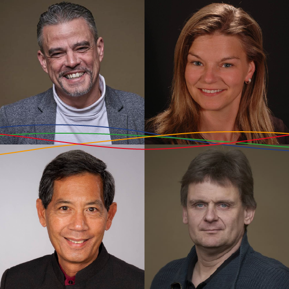 Von oben nach unten rechts: Dirk Sattelmeier, Karin Reiß, Sucharit Bhakdi, Martin Schwab. Foto: via dieBasis NRW