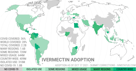 Entgegen der Empfehlung der WHO haben, wie mehrfach berichtet, die Gesundheitsbehörden von Indien, Mazedonien, Bulgarien, Slowakei und mehreren südamerikanischen Ländern die Verwendung von Ivermectin zur Behandlung von COVID-19 bereits genehmigt.