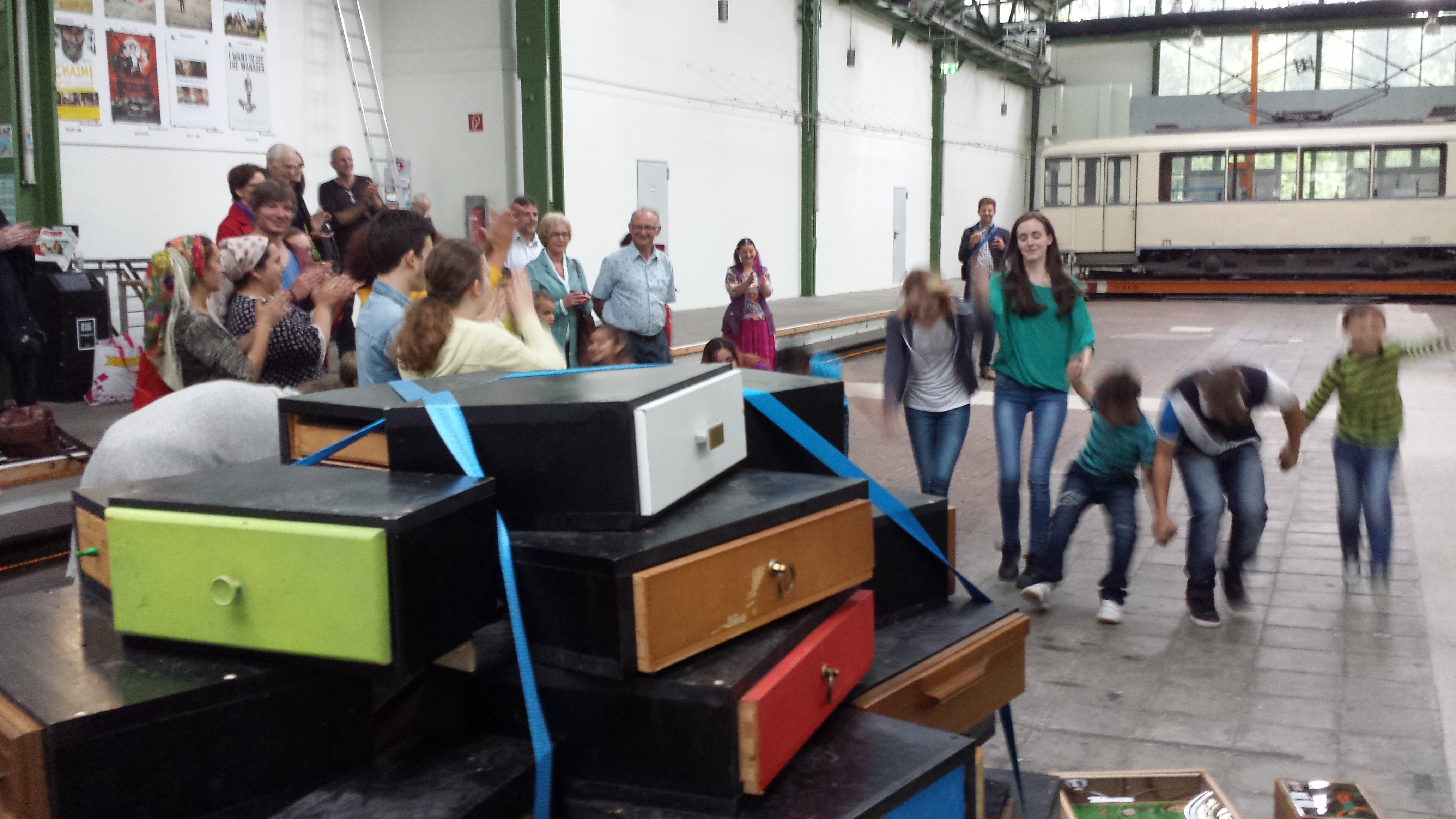 Nach der Performance „Schubladen“, draußen in der Tramreparaturhalle des einstigen Depots auf der Dortmunder Immermannstraße, begrüßte Stadtdirektor Jörg Stüdemann die Gäste zur Eröffnung des 2. Roma Kulturfestivals DJELEM DJELEM auf der Bühne des Theaters im Depot. Stüdemann sagte eingangs, man wolle neben den Kulturbegegnungen, die sich nun aneinander reihten und zu besichtigen seien, auch „auf die Lebenszustände und Lebensumstände der Neubürger in Dortmund aufmerksam machen“. Es gelte vor allem „Arbeit und Wohnen“ dieser Menschen zu organisieren. Derzeit lebten in Dortmund viele tausend Menschen „vor allem aus Bulgarien und Rumänien, aus Spanien und auch aus Mazedonien.“ Die Lebenssituation der Menschen mit vielen Kindern sei „alles andere als rosig“, Jörg Stüdemann in seiner Ansprache.