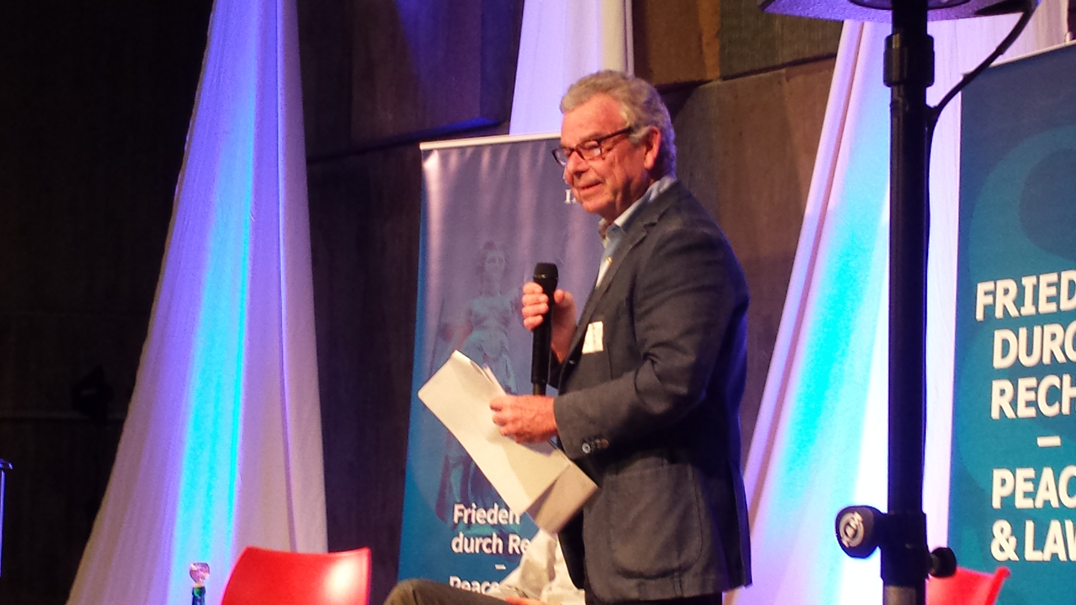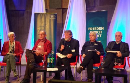 Friedhelm Klinkhammer (li.) und Volker Bräutigam (re.) währender einer Medientagung der IALANA in Kassel. Foto: Claus Stille