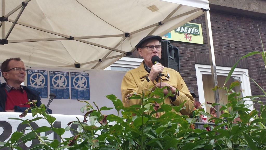 Vor der Bundestagswahl riet Eugen Drewermann zu schauen, wer vom Frieden redet und wer eigentlich sich auf Nebenschauplätze begebe. Sehen, wer wirklich für Abrüstung steht. Oder wer im Grunde nur das Weiter-so im Sinne hat. „Ihr kennt mich ja“, zitierte Eugen Drewermann Bundeskanzlerin Merkel da und hatte dazu nur ein „Allerdings!“ übrig.