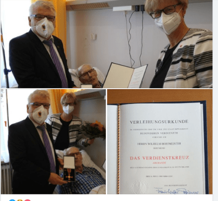 Friedensaktivist und Ostermarschierer Willi Hoffmeister erhielt für seine jahrzehntelange politische Arbeit das Bundesverdienstkreuz. Am Freitag händigte Norbert Schilff, 1. Bürgermeister in Dortmund, Willi Hoffmeister die Auszeichnung aus. Mit dabei war Jutta Reiter, Vorsitzende des DGB Dortmund Hellweg. Die Krankenpfleger*innen und Ärzt*innen des Katholischen Krankenhauses in Dortmund Kirchlinde gratulierten als Erste.