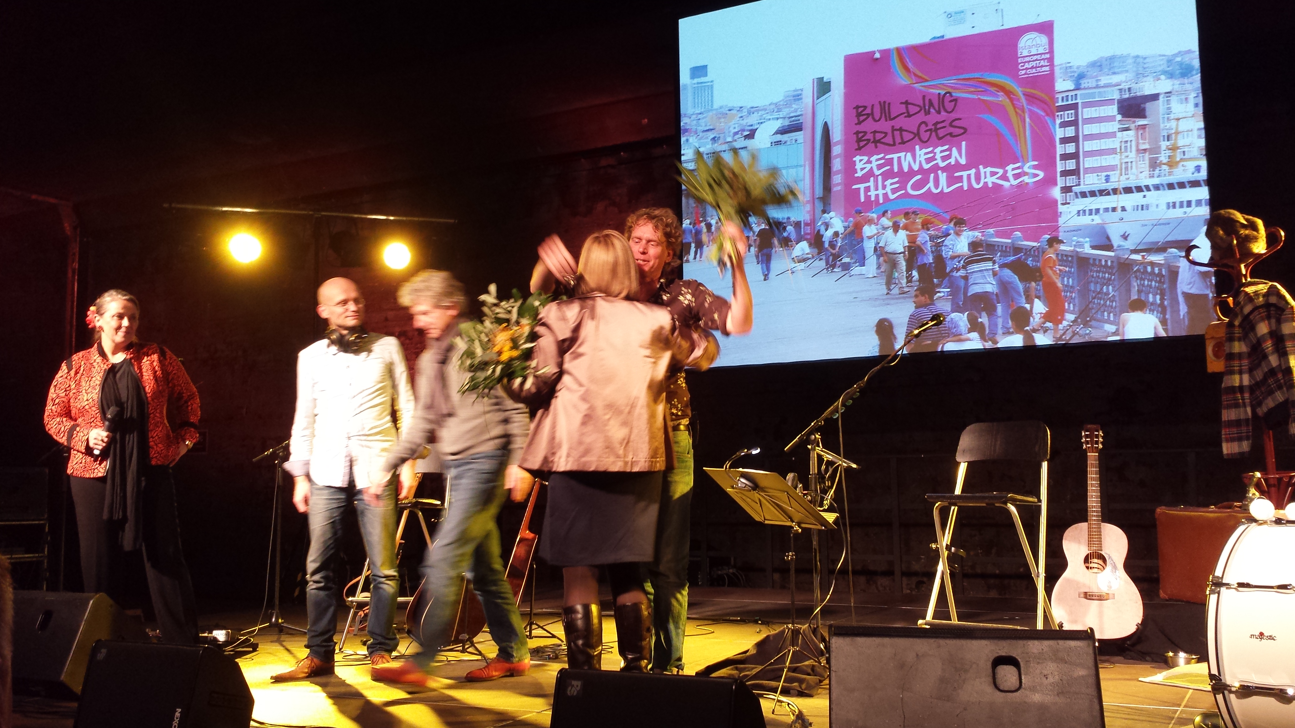Die Veranstaltung beschließen einige Zuschauer, indem sie von ihren ganz besonderen, persönlichen Träumen erzählten. Dann geht es zum gemütlichen über. Tjerk Ridder gibt Autogramme. Sein Buch wird verkauft. Rührig von der engagierten Inhaberin der Buchhandlung „Katzenprung“, Frau Zepig, aus der Stoppenberger Hanielstraße. Und draußen vor der Tür des Salzlagers kommt man sich noch einmal bei orientalischen Speisen und einem Bier näher. Angeboten von den netten Leuten des Hukultur-Projektes, das ein Bürgerprojekt aus der Hustadt in Bochum finanzieren soll. Gespräche zwischen Zuschauern und mit den Künstlern kommen in Gang. Welch erfüllter Abend! Rauschender Applaus.