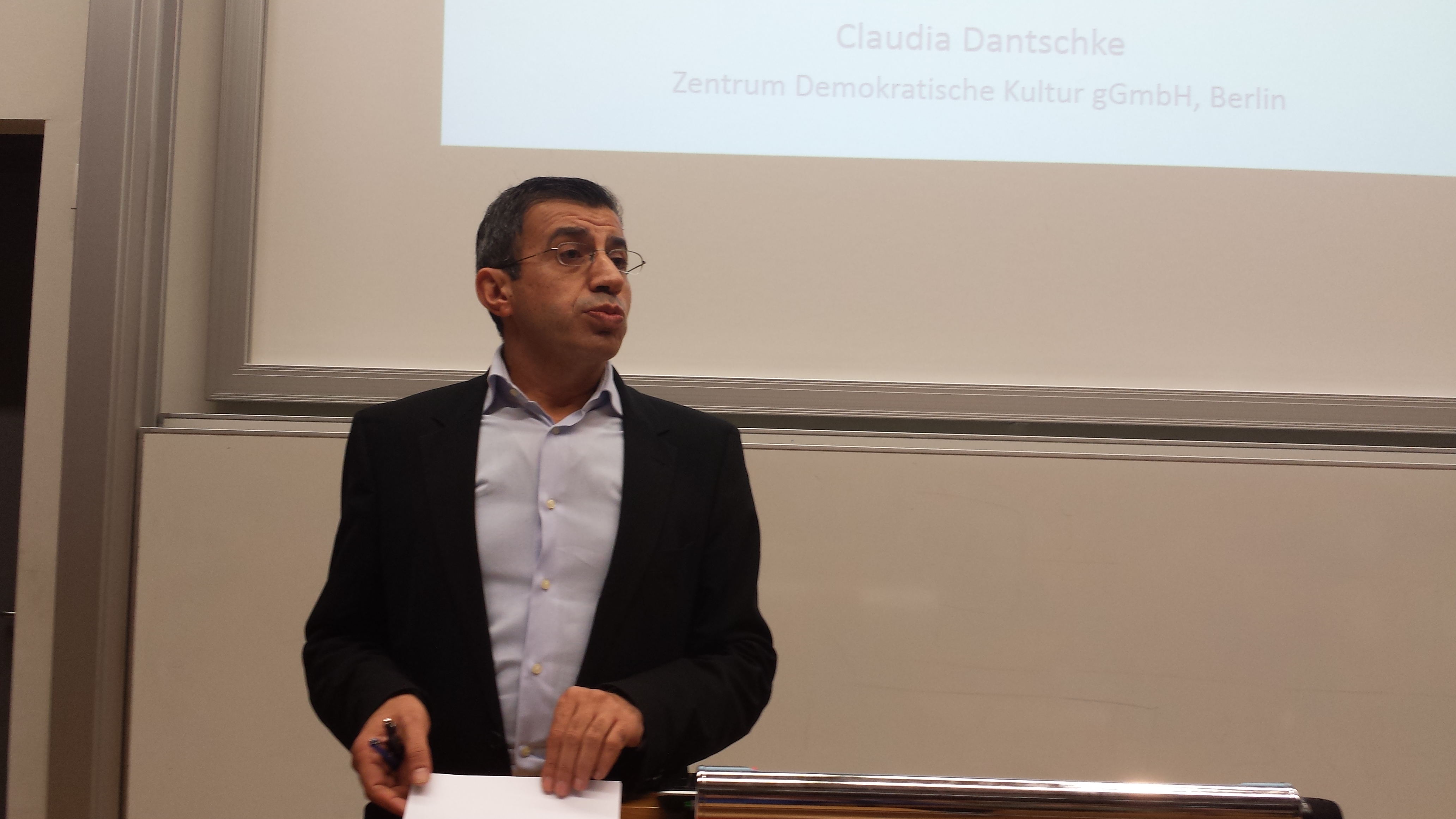 Kurz nach Beginn der Diskussion mit Moderator Ahmet Toprak ein Eklat: Schon während ihres Referates hatte sie einen Zuhörer in der ersten Reihe des mit um die 300 Menschen gefüllten Hörsaals ausgemacht, der mit seinem Smartphone filmte. Diesen stellte sie zur Rede. Seine Rechtfertigung: Er filme das für sich selbst. Ates zeigte sich empört, fand das „unanständig“: „Normalerweise kündigt man so etwas an. Welche Absichten haben sie mit dem Film?“ Prof. Dr. Toprak machte einen Vorschlag zur Güte: Der junge Mann solle das Video dann im Beisein Frau Ates löschen. Was er im Anschluss an die Veranstaltung auch tat. Ahmet Toprak und der Berichterstatter wohnten dem Löschvorgang persönlich bei.